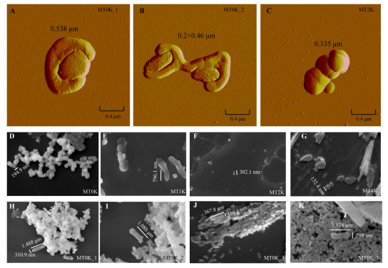 图2. 马里亚纳海沟水生微生物的AFM和SEM观察